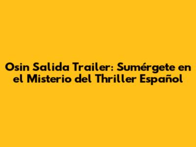 Hey, amigos! ¿Están listos para sumergirse en un mundo de suspenso, intriga y emociones fuertes? Hoy, vamos a desglosar el tráiler de Osin Salida, una película que promete mantenernos al borde de nuestros asientos. Prepárense para un viaje lleno de giros inesperados y revelaciones impactantes. Vamos a explorar a fondo el tráiler, analizando cada escena, personaje y detalle que nos da una idea de lo que nos espera en esta emocionante producción española. ¿Están listos para descubrir los secretos de Osin Salida? ¡Acompáñenme!
