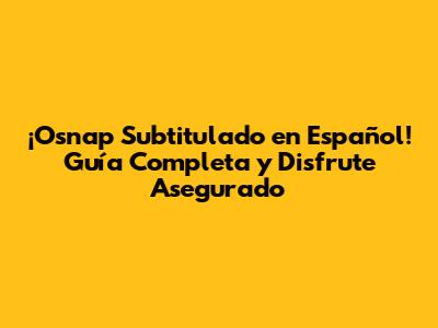 Dónde Encontrar Osnap Subtitulado en Español