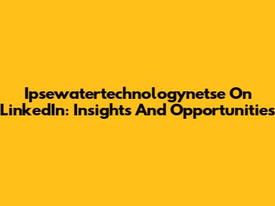 Ipsewatertechnologynetse On LinkedIn: Insights And Opportunities