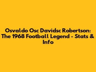 Hey guys! Ever heard of Osvaldo "Osc Davidsc" Robertson? If you're a true football fanatic, especially one with a soft spot for the legends of '60s and '70s football, then this name should definitely ring a bell. Born in 1968, this footballer left an indelible mark on the sport, and today, we're diving deep into his career, stats, and the legacy he created. So, grab your favorite beverage, settle in, and let’s explore the fascinating journey of Osvaldo Robertson.