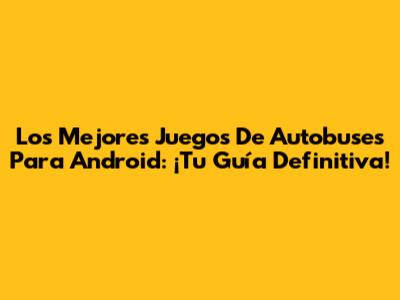 Los Mejores Juegos De Autobuses Para Android: ¡Tu Guía Definitiva!