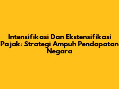 Intensifikasi Dan Ekstensifikasi Pajak: Strategi Ampuh Pendapatan Negara
