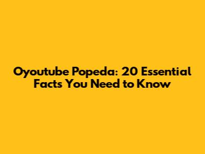 Alright, let's break down 20 essential facts about Oyoutube Popeda that you absolutely need to know. These facts will cover a range of topics, from its origins and key figures to its evolution and impact on online culture.