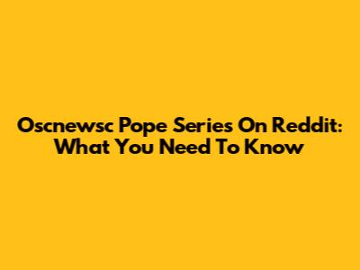 Oscnewsc Pope Series On Reddit: What You Need To Know