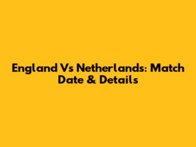 England Vs Netherlands: Match Date & Details