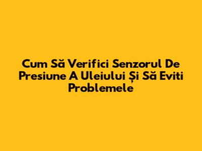 Cum Să Verifici Senzorul De Presiune A Uleiului Și Să Eviti Problemele