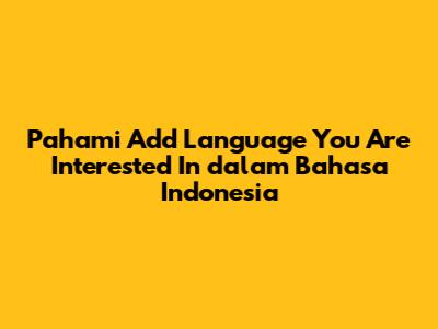 Apa Sebenarnya Arti 'Add Language You Are Interested In'?