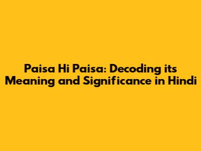 Hey guys! Ever heard the phrase "paisa hi paisa"? If you're even remotely familiar with Hindi, chances are you have. It's a super common saying, but what does it really mean? Let's dive deep and explore the paisa hi paisa meaning in Hindi, its cultural significance, and how it's used in everyday life. Buckle up, because we're about to embark on a fun linguistic journey!