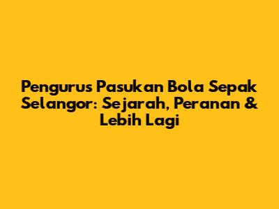 Pengurus Pasukan Bola Sepak Selangor: Sejarah, Peranan & Lebih Lagi