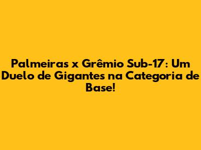 O Palmeiras e o Grêmio, dois gigantes do futebol brasileiro, sempre proporcionam grandes jogos, e quando se trata das categorias de base, a emoção é garantida! O confronto entre Palmeiras e Grêmio Sub-17 é um prato cheio para os fãs de futebol, pois esses jovens talentos demonstram um futebol de alta qualidade, com muita técnica, garra e vontade de vencer. Neste artigo, vamos explorar tudo sobre esse duelo eletrizante, desde o histórico dos confrontos até as expectativas para os próximos jogos.