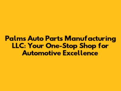 - Competitive Pricing: Despite their commitment to quality, Palms Auto Parts Manufacturing LLC likely offers competitive pricing, making their parts an affordable option for both professional mechanics and DIY enthusiasts. They understand that value is essential and strive to provide high-quality parts at reasonable prices.