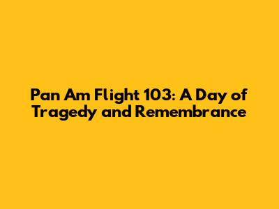 The Legacy of Pan Am Flight 103: Remembering and Learning