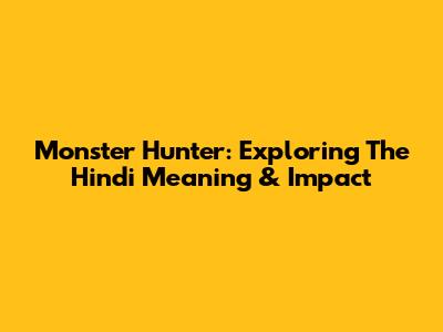 Monster Hunter: Exploring The Hindi Meaning & Impact