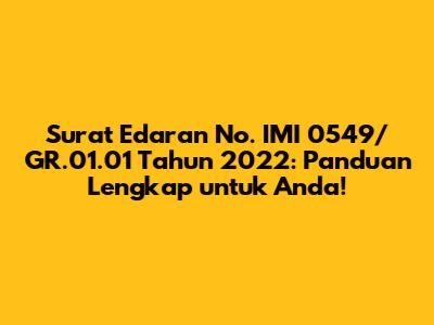 Halo semuanya! Apa kabar? Kali ini kita akan membahas sesuatu yang penting banget nih, yaitu Surat Edaran No. IMI 0549/GR.01.01 Tahun 2022. Pasti banyak yang penasaran dong, apa sih isi dari surat edaran ini dan kenapa penting untuk kita ketahui? Tenang aja, guys, di artikel ini kita akan kupas tuntas semuanya biar kalian nggak ketinggalan informasi terbaru. Yuk, kita simak bareng-bareng!