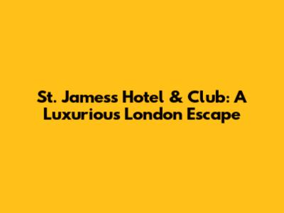 St. James's Hotel & Club: A Luxurious London Escape