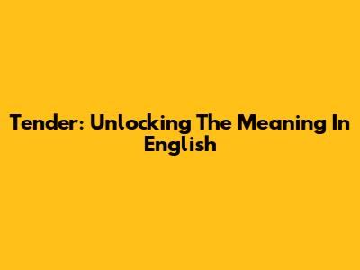Tender: Unlocking The Meaning In English