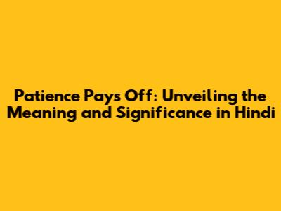 Hey folks! Ever heard the saying, "Sabr ka phal meetha hota hai"? Well, that's the Hindi version of "Patience Pays Off!" But, like, what does it really mean? And why is it so important to understand, especially in today's fast-paced world? Let's dive in, shall we? We'll explore the essence of patience, its cultural significance in India (and beyond!), and how embracing it can seriously level up your life. Buckle up, because we're about to embark on a journey of self-discovery, understanding, and a whole lotta chill vibes.