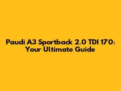 Hey guys, let's dive into the Paudi A3 Sportback 2.0 TDI 170! This is a car that has gained some serious popularity over the years, and for good reason. It's stylish, efficient, and packs a punch with its 170 horsepower engine. Whether you're a seasoned car enthusiast or just curious about what makes this car tick, this guide is for you. We'll explore everything from its performance and features to common issues and how to keep it running smoothly. Get ready to learn all there is to know about this fantastic vehicle!