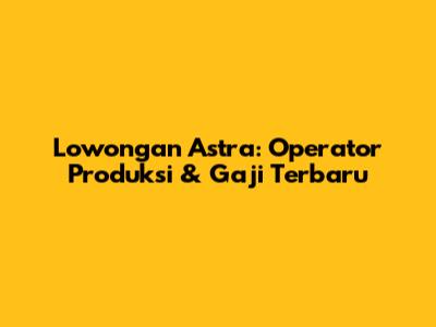 Lowongan Astra: Operator Produksi & Gaji Terbaru