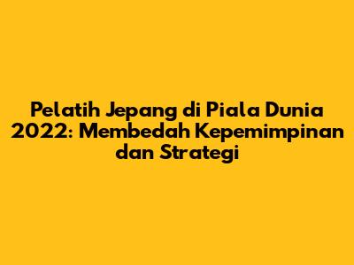 Pelatih Jepang di Piala Dunia 2022 menjadi sorotan utama bagi para penggemar sepak bola di seluruh dunia. Keputusan untuk memilih pelatih, serta strategi yang diterapkan, sangat krusial dalam menentukan keberhasilan tim di panggung internasional. Dalam artikel ini, kita akan membahas secara mendalam tentang sosok yang memimpin timnas Jepang di turnamen bergengsi ini, menganalisis gaya kepelatihan, taktik yang digunakan, serta dampak yang dihasilkan terhadap performa tim. Kita akan menyelami lebih dalam mengenai bagaimana seorang pelatih dapat membentuk tim yang solid, kompetitif, dan mampu memberikan kejutan di Piala Dunia. Mari kita mulai dengan mengulas secara detail siapa yang menjadi nahkoda tim Samurai Blue di Qatar.