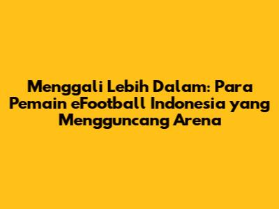 Guys, dunia gaming eFootball itu seru banget, kan? Dan kalau ngomongin eFootball di Indonesia, pasti ada nama-nama keren yang muncul. Siapa aja sih mereka? Yuk, kita kupas tuntas para pemain eFootball Indonesia yang patut kamu sorot di tahun 2024 ini. Mereka bukan cuma jago main, tapi juga punya gaya khas yang bikin kompetisi makin panas. Artikel ini bakal ngajak kamu kenalan sama talenta-talenta terbaik yang lagi bersinar di kancah eFootball tanah air. Kita akan bahas perjalanan mereka, strategi andalan, sampai gimana sih rasanya jadi gamer profesional di era digital ini. Jadi, siapin diri kamu buat menyelami dunia eFootball yang penuh strategi, skill dewa, dan pastinya, persaingan yang ketat. Kita akan lihat siapa aja yang punya potensi besar buat jadi bintang dan membawa nama Indonesia di kancah internasional. Jangan sampai ketinggalan info terupdate seputar para jagoan eFootball lokal kita, ya!