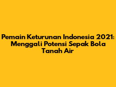 Pemain keturunan Indonesia memiliki potensi yang sangat besar untuk memberikan kontribusi bagi sepak bola tanah air. Tahun 2021 menjadi bukti nyata bagaimana mereka memberikan warna dan harapan baru. Namun, perjalanan mereka tidak selalu mulus. Ada tantangan yang harus dihadapi, mulai dari proses naturalisasi hingga adaptasi budaya.
