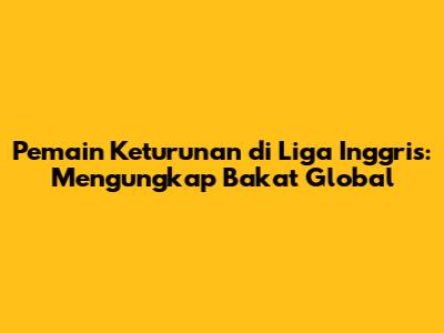 - Bagaimana masa depan pemain keturunan di Liga Inggris? Masa depan pemain keturunan di Liga Inggris terlihat cerah, dengan harapan bahwa lebih banyak pemain keturunan akan bermain di liga di masa mendatang.