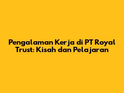 Bekerja di sebuah perusahaan, apalagi perusahaan besar seperti PT Royal Trust, tentu menjadi impian banyak orang. Pengalaman kerja di sana bisa menjadi batu loncatan yang sangat berharga untuk karir kita. Namun, apa saja sih yang sebenarnya terjadi di balik tembok kantor megah itu? Bagaimana suka dukanya, tantangannya, dan pelajaran yang bisa dipetik? Nah, kali ini aku mau berbagi pengalamanku bekerja di PT Royal Trust. Siap-siap ya, karena cerita ini bakal panjang dan penuh warna!