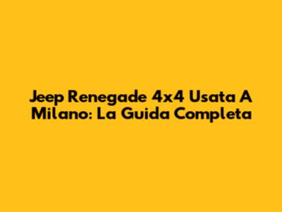 Jeep Renegade 4x4 Usata A Milano: La Guida Completa