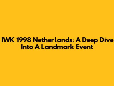 IWK 1998 Netherlands: A Deep Dive Into A Landmark Event