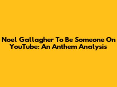 Noel Gallagher "To Be Someone" On YouTube: An Anthem Analysis