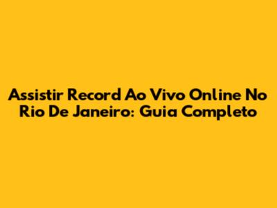 Assistir Record Ao Vivo Online No Rio De Janeiro: Guia Completo