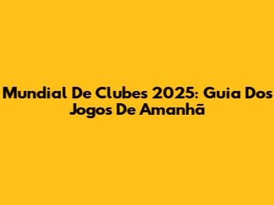 Mundial De Clubes 2025: Guia Dos Jogos De Amanhã