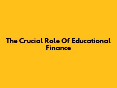 The Crucial Role Of Educational Finance