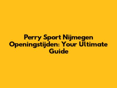 Perry Sport Nijmegen Openingstijden: The Details