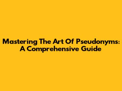 Mastering The Art Of Pseudonyms: A Comprehensive Guide