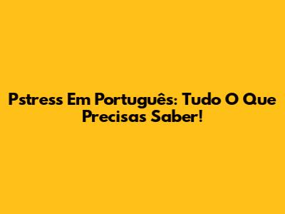 Pstress Em Português: Tudo O Que Precisas Saber!