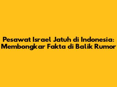 Pesawat Israel 'Jatuh' di Indonesia – Guys, mari kita bedah topik yang cukup bikin heboh jagat maya: rumor tentang pesawat Israel yang konon 'jatuh' di Indonesia. Berita ini, atau lebih tepatnya rumor, langsung memicu beragam reaksi, mulai dari rasa penasaran, spekulasi liar, hingga upaya mencari kebenaran. Kita semua tahu, informasi di era digital ini bisa menyebar secepat kilat, dan seringkali, kebenaran tertutup oleh tumpukan informasi yang simpang siur. Jadi, mari kita mulai dengan mengumpulkan fakta-fakta yang ada, memilah rumor dari kenyataan, dan mencoba menganalisis apa yang sebenarnya terjadi. Kita akan menyelami berbagai aspek, mulai dari kemungkinan keterlibatan militer Israel, potensi penyebab 'kecelakaan' (jika memang benar terjadi), hingga dampaknya bagi hubungan Indonesia dan Israel. Persiapkan diri kalian untuk perjalanan mengungkap kebenaran yang mungkin akan penuh kejutan.