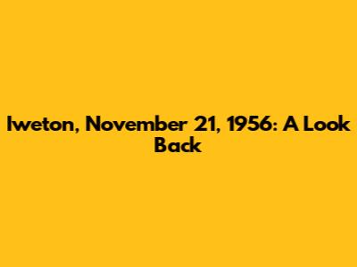 Iweton, November 21, 1956: A Look Back
