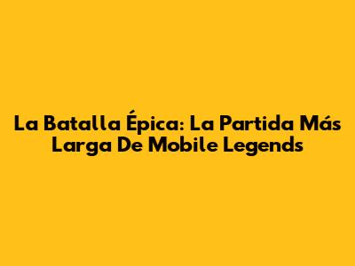 La Batalla Épica: La Partida Más Larga De Mobile Legends