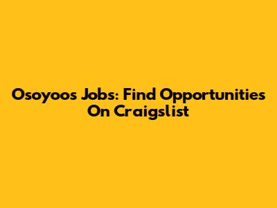 Osoyoos Jobs: Find Opportunities On Craigslist