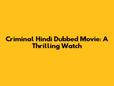 Criminal Hindi Dubbed Movie: A Thrilling Watch