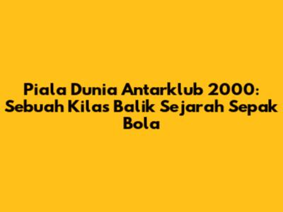 Piala Dunia Antarklub 2000, sebuah turnamen sepak bola yang menjadi tonggak sejarah, menandai dimulainya era baru dalam kompetisi klub global. Guys, mari kita telusuri lebih dalam tentang turnamen bersejarah ini, dari sejarahnya, format yang unik, hingga momen-momen tak terlupakan yang masih membekas di benak para penggemar sepak bola.