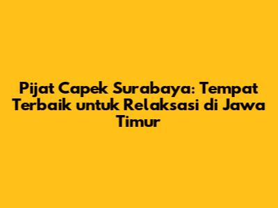 Hai guys! Kalian semua pasti pernah dong merasakan pegal-pegal atau capek setelah seharian beraktivitas? Apalagi buat kita-kita yang tinggal di kota besar seperti Surabaya, aktivitas yang padat dan rutinitas sehari-hari seringkali bikin badan terasa nggak karuan. Nah, buat kalian yang lagi nyari solusi untuk mengatasi masalah ini, pijat capek di Surabaya bisa jadi pilihan yang tepat banget nih! Artikel ini bakal ngebahas tuntas tentang pijat capek di Surabaya, mulai dari manfaatnya, jenis-jenis pijat yang tersedia, tempat-tempat terbaik, sampai tips memilih terapis yang pas buat kalian. Jadi, simak terus ya!