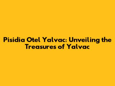 Hey guys! Planning a trip to Turkey and itching for an adventure off the beaten path? Then listen up! You absolutely have to consider Pisidia Otel Yalvac! This gem is your perfect home base for exploring the stunning region of Yalvac, steeped in history and brimming with natural beauty. I'm talking about a real treat, something beyond the usual tourist traps. So, grab a cup of coffee, settle in, and let's dive into why Pisidia Otel Yalvac should be at the top of your travel list! We'll explore the hotel itself, the amazing historical sites you can visit, and a few tips to make your trip a total success. Get ready to be amazed because Yalvac is a seriously cool place! The town of Yalvac, nestled in the heart of the Isparta province, is a hidden treasure trove for history buffs and culture enthusiasts. Imagine walking the same streets as ancient Romans and Greeks, feeling the echoes of centuries past. That's the vibe you get in Yalvac. And what better way to experience it than by staying at the Pisidia Otel Yalvac? It's not just a place to sleep; it's an experience! The hotel provides a perfect blend of comfort, modern amenities, and a touch of local charm, making it an ideal choice for all kinds of travelers. From solo adventurers to families, everyone will find something to love about Pisidia Otel Yalvac. It is a perfect place to chill.