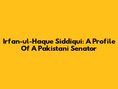 Irfan-ul-Haque Siddiqui: A Profile Of A Pakistani Senator