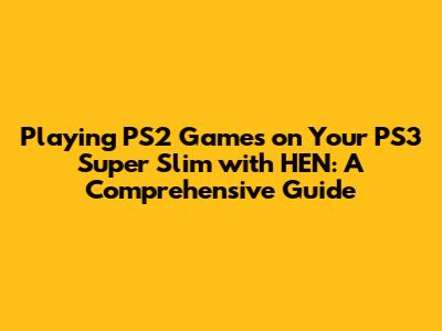 So, you're looking to relive those classic PlayStation 2 games on your PS3 Super Slim, huh? Well, you've come to the right place! While the PS3 Super Slim doesn't natively support PS2 games like the older models did, don't worry, HEN (Homebrew Enabler) comes to the rescue. This guide will walk you through the process, step by step, to get those nostalgic titles up and running. It might seem a bit daunting at first, but trust me, it's totally doable, and the reward of playing those PS2 gems again is well worth the effort. Just follow along carefully, and you'll be back in the world of Final Fantasy X, Metal Gear Solid 3, or whatever your favorite PS2 game might be in no time! The process involves enabling HEN on your PS3, obtaining and transferring your PS2 game files, and using a compatible emulator or software to launch the games. It's crucial to understand each step to avoid any potential issues. Remember, messing with your console's firmware can be risky, so always double-check that you're following the instructions precisely. Also, ensure you're only using game files that you legally own, as downloading ROMs without owning the physical copies is a big no-no. With that said, let's get started and bring those PS2 memories back to life on your PS3 Super Slim! We're going to cover everything from the initial setup to troubleshooting common problems, ensuring you have a smooth and enjoyable experience. And hey, if you run into any snags along the way, don't hesitate to search online forums or communities for help; there are tons of people out there who have gone through the same process and are willing to share their knowledge. Happy gaming!