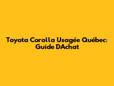 Toyota Corolla Usagée Québec: Guide D'Achat