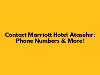 Contact Marriott Hotel Atasehir: Phone Numbers & More!