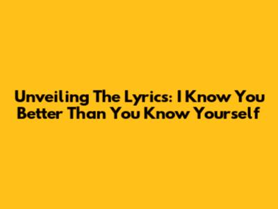 Unveiling The Lyrics: I Know You Better Than You Know Yourself